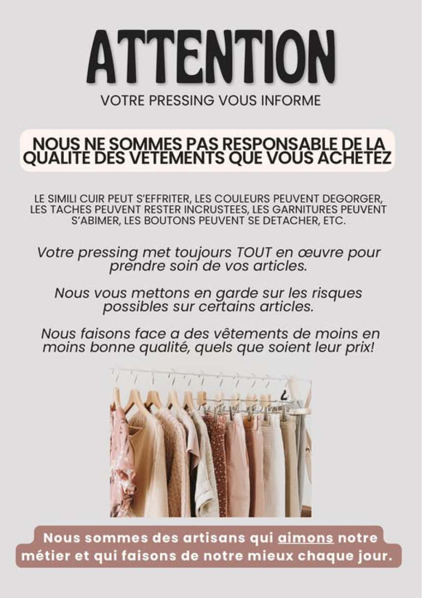 Nous établissons un tarif sur devis, selon vos demandes ( nettoyage, defroissage,repassage etc.), et nous réalisons vos travaux dans les délais les plus brefs.